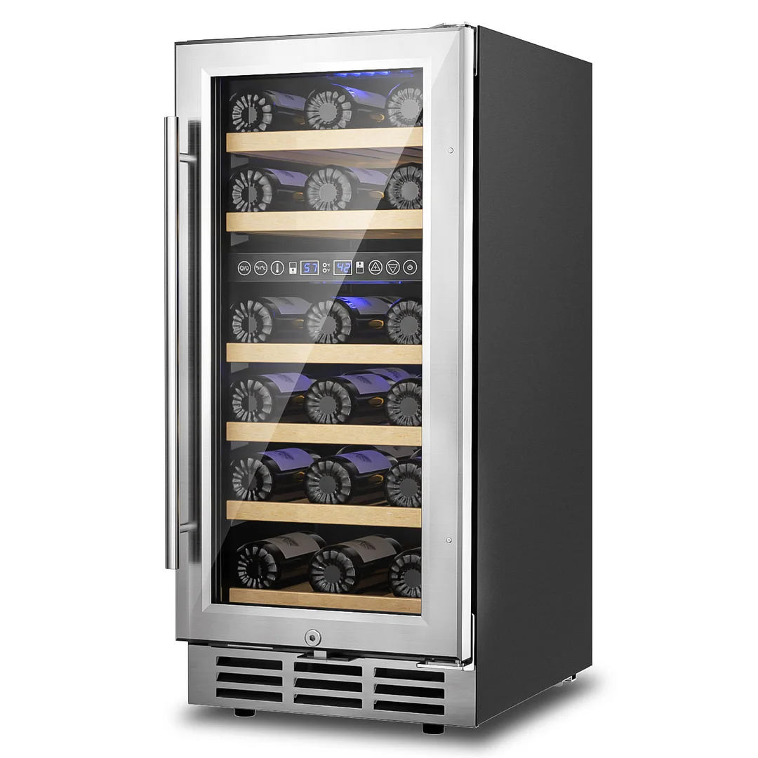 Spacious & Versatile Storage: The wine fridge holds up to 29 standard Bordeaux bottles, providing ample space for all your favorites. The wine cooler has adjustable shelves that can easily accommodate bottles of different sizes.